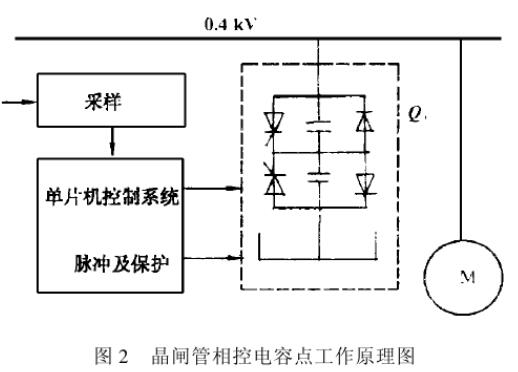 ? ? ? ?這里介紹一種晶閘管相控電容器無功功率動態連續跟蹤補償技術,它是現代控制理論和計算機技術相結合的采樣產物,如圖2所示。二極管主要用來解決電流連續問題,晶閘管主要用來解決電容器的相控問題,整個控制系統都是在單片機指揮下有序地進行工作,該裝置的主要特點是:電流可快速動態連續跟蹤調節,補償曲線平滑,徹底消除了傳統動態不連續補償的投切振蕩問題,諧波含量甚小,無需濾波器。此外,還具有過流、過壓、失電和內部故障自動退出工作的保護。裝置整體緊湊、輕穎,可直接掛網,隨遷方便,無需人看管。因此它特別適合于移動性較強的閃變負荷電動機的無功補償。