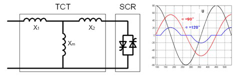 TCT又名晶閘管控制變壓器,它是一種高漏抗變壓器,其二次繞組接晶閘管,通過控制導通角就能提供連續變化的無功功率。如下圖所示: