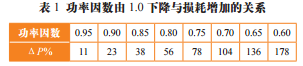 如果能將無功就地補償一部分,則發(fā)電機、配電網(wǎng)送給用電負荷的無功就減少,配電網(wǎng)上的無功流動也會減少,線路功率因數(shù)提高,因而也就減少了損耗。提高功率因數(shù)和降低線損的關(guān)系參見表1。